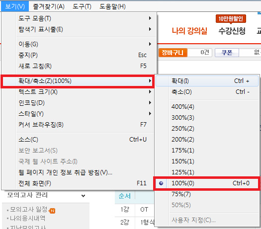 ÀÖ´Â ¸Þ´º Áß[º¸±â] - [È®´ë/Ãà¼Ò(Z)]¿¡ ¸¶¿ì½º¸¦ ¿Ã·Á ³õÀº ÈÄ, (¸Þ´º°¡ º¸ÀÌÁö ¾ÊÀ» ½Ã alt + v ´ÜÃàŰ ÀÌ¿ë)